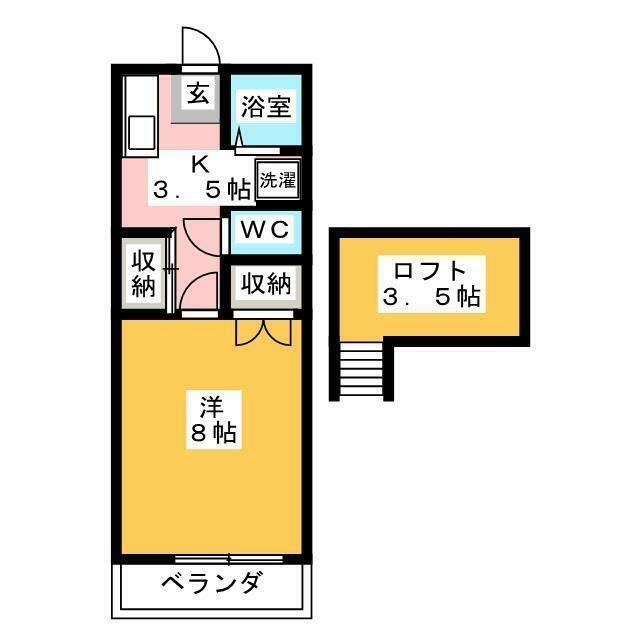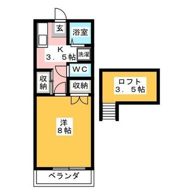| 間取り | 1K(洋8 K3.5 ロフト3.5) | 主要採光面 | 東 |