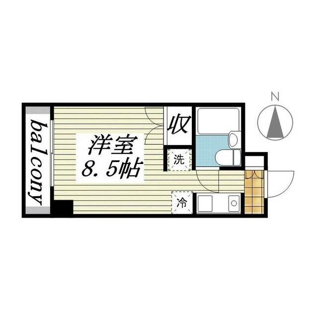 | 間取り | ワンルーム(洋8.5) | 主要採光面 | 西 |